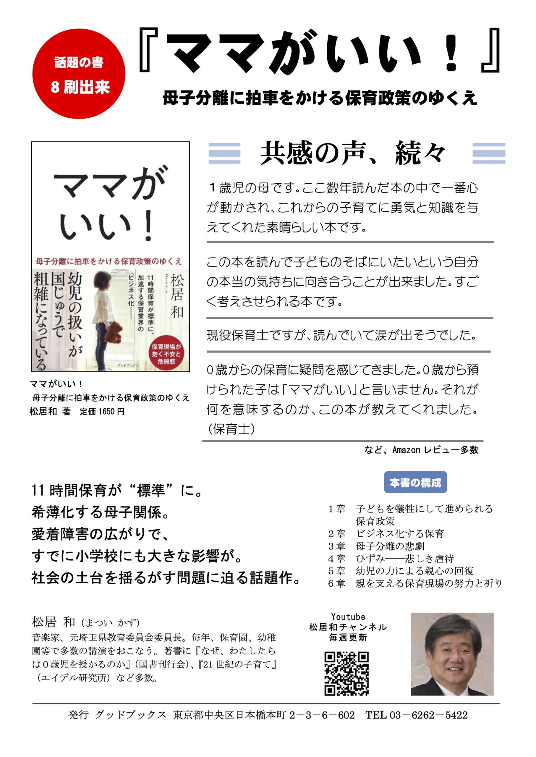 「ママがいい! 」(~母子分離に拍車をかける保育政策のゆくえ)を紹介させていただいたことを事後報告となり、申し訳ありませんがお伝えさせていただくと同時に、著者の松居和様に、心からのありがとうの気持ちを、お伝えできたらと思っております。