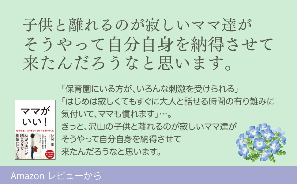 いつの間にか、0歳児を預けることに躊躇しない親が増えて行った 投稿者: kazu 「ママがいい!」Amazonのレビューに来たメッセージです。子育ては人生そのもの。しかも、やり直すことができない。 こんな時期を乗り越えながら、いつの間にか、0歳児を預けることに躊躇しない親が増えて行った。政府や経済界の思惑通りに。 その結果、学校も保育も人材不足で破綻寸前なのです。 #保育 #母子分離 #松居和 #ママがいい #こども家庭庁