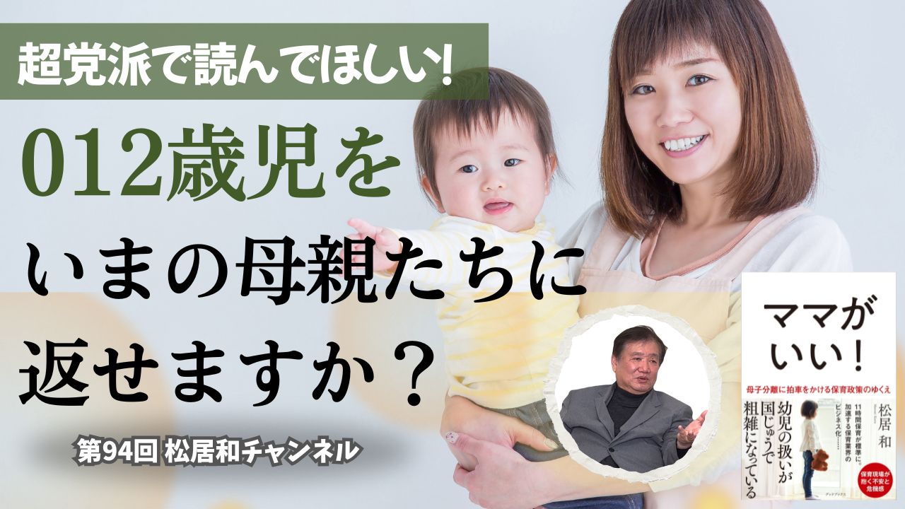 松居和チャンネル 第94回、(テーマは) 「012歳児を、いまの母親たちに返せますか?」という問いかけで、副題は、「超党派で、読んでほしい。」にしました。